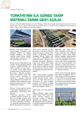 tarım GES projeleri olacak. Tür- ODTÜ Güneş Enerjisi Uygulama jileri Birim Koordinatörü Doç Dr.