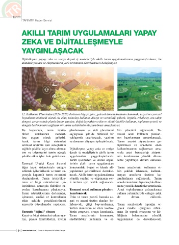 Dijitalleşme, yapay zeka ve veriye dayalı iş modelleriyle akıllı tarım uygulamalarının yaygınlaştırılması, bu