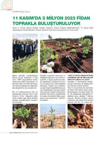 sım'ı, "Milli Ağaçlandırma Günü" çeşitlilik ve doğal yaşamın devamı- MİLYON LİRAYA ULAŞTI"