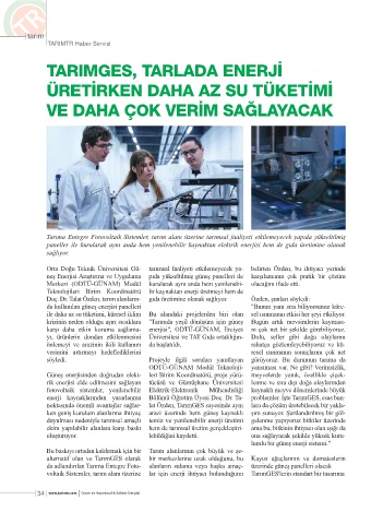 enerji kaynaklarından yararlanma Bölümü Öğretim Üyesi Doç. Dr. Ta- problemler. İşte TarımGES, esas bun-
