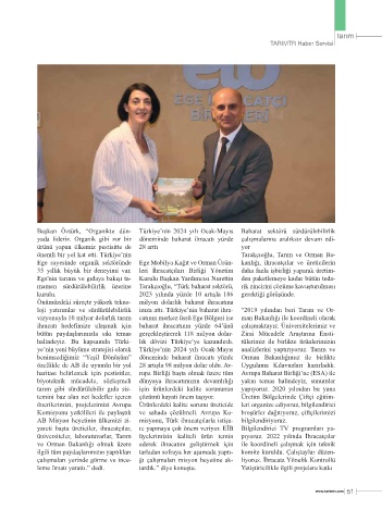 Ege'nin tarıma ve gıdaya bakışı ta- Kurulu Başkan Yardımcısı Nurettin den paketlemeye kadar bütün teda-