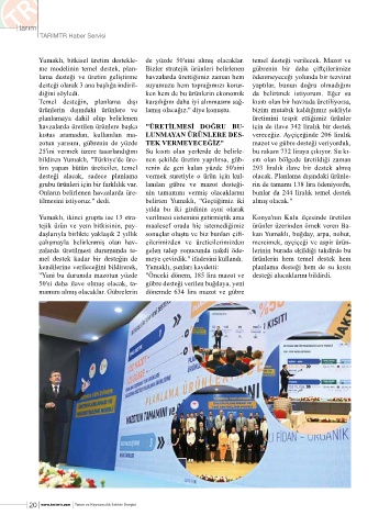 kıstas aramadan, kullanılan ma- LUNMAYAN ÜRÜNLERE DES- vereceğiz. Ayçiçeğinde 206 liralık