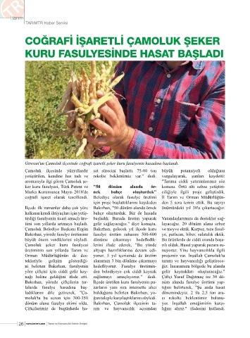 Bakırhan, yörede çiftçilerin tar- İlçede üretilen kuru fasulyenin pa- nüm alanda fasulye üretimi yap-