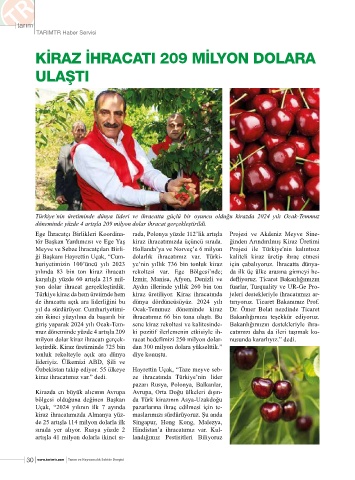 milyon dolar kiraz ihracatı gerçek- racat hedefimizi 250 milyon dolar- nusunda kararlıyız.” dedi.
