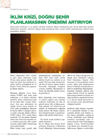 kişiden 7'sinin şehirlerde yaşayaca- Newcastle, Guayaquil, Kingston, küresel ısınmayla mücadeledeki ro-