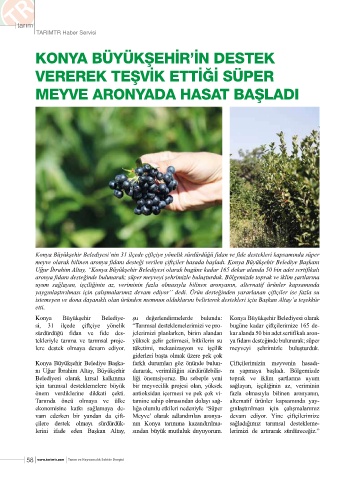 meyve olarak bilinen aronya fidanı desteği verilen çiftçiler hasada başladı. Konya Büyükşehir Belediye Başkanı