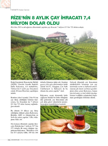 çay ihraç edildiğini belirten Kal- dile getirerek, çay ihracatının yılı