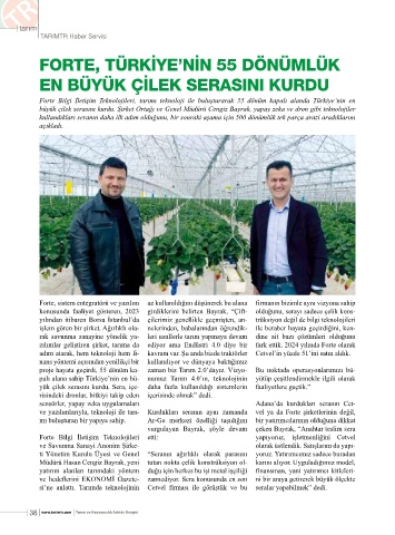 ve yazılımlarıyla, teknoloji ile tarı- Kurdukları seranın aynı zamanda vel ya da Forte şirketlerinin değil,