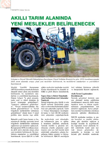 (MYK) koordinasyonunda akıllı tarım kurslar düzenlenerek bu alandaki ni- ve danışmanlık hizmeti sağlanacak.
