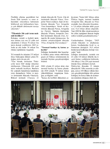 min artması için son 22 yılda reel ürünleri yetiştiriciliğinde dünyada Cumhurbaşkanı Erdoğan, "2025