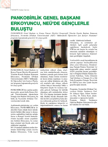 PANKOBİRLİK'ten yapılan açıkla- şılık gelecek herhangi bir kârlılık Programa, Necmettin Erbakan Üni-