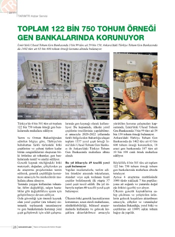 122 bin 750 tohum örneği gen ban- lıyor. Bu kapsamda, ülkede yerel samında, İzmir'deki Ulusal Tohum