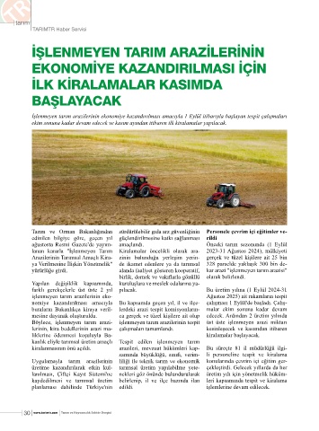 lanan kararla "İşlenmeyen Tarım Kiralamalar öncelikli olarak ara- 2023-31 Ağustos 2024), mülkiyeti
