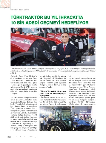 Tarım Fuarı'nda Türkiye'de trak- len çok önemli bir kısmı tarımdan pan bir firmayız. Türkiye'de traktör