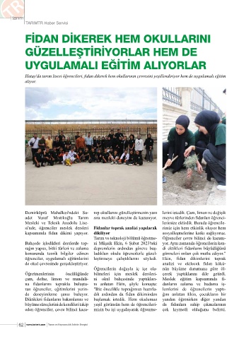 Demirköprü Mahallesi'ndeki Sa- nıp okullarını güzelleştirmenin yanı lerini istedik. Çam, limon ve değişik
