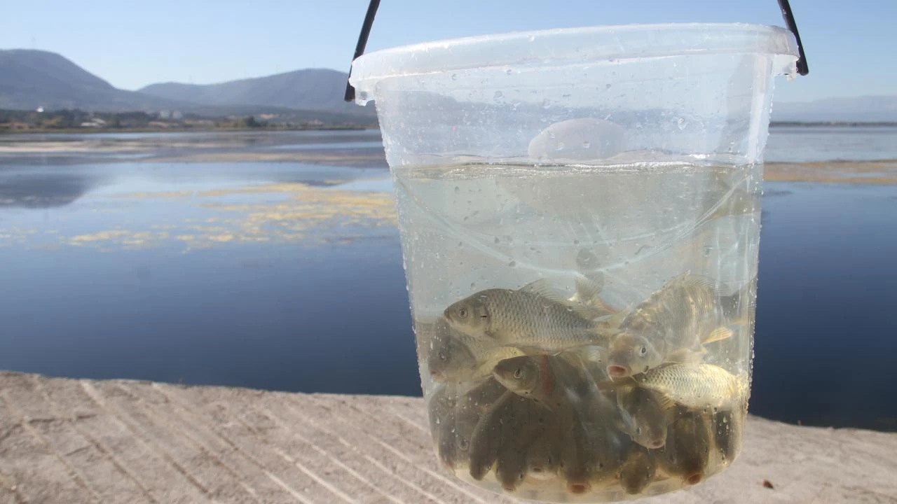 Konuşmaların ardından Tarım ve Orman İl Müdürü Duran Seçen, Belediye Başkanı Adil Bayındır ve protokol tarafından kovalar içerisindeki yavru sazan balıkları göl sularına bırakıldı.