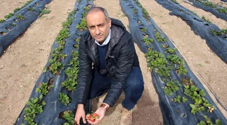 Bozkırın ortasında, Ekim ayında çilek hasadı