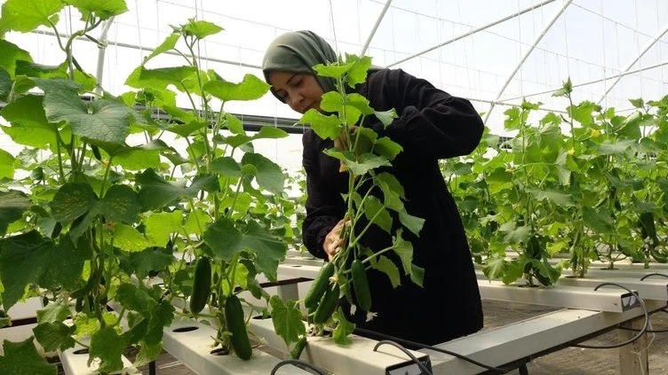 Topraksız tarımla marul ve salatalık üreticiliği yapan Hanife Kartal, 10 yıldır tarımla uğraştığını belirterek, "Maliyetlerin artması üzerine bir araştırmaya girdim. Karşıma topraksız tarım çıktı. Topraksız tarımın avantajlarını araştırdım. Avantajların gayet iyi olduğunu, birim alandan çok fazla verim olduğunu, sağlıklı ve kaliteli ürün alındığını öğrendim. Yaklaşık iki senedir topraksız tarımla uğraşmaya başladım. Topraksız tarım, topraklı tarıma göre çok avantajlı. İlaç girdi olayı çok az. Özellikle su tasarrufu yapıyorsunuz.