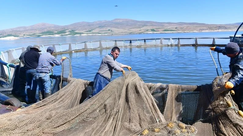 İl Tarım ve Orman Müdürlüğünden yapılan yazılı açıklamaya göre, Yamula Baraj Gölü'ndeki 16 tesiste balıkçılar, tekneyle somon balığı hasadı gerçekleştiriyor.