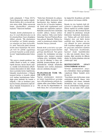 dikkati çekerek, “Bu planlamanın luna gelecek. Bakanlık, Türkiye ba- bölgeleri olan, çok farklı üretim