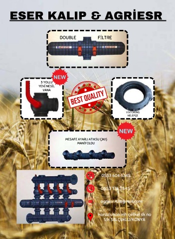 ESER KALIP & AGRİESR DOUBLE FİLTRE 3 YOLLU YENİ NESİL VANA VİKTORİNG KELEPÇE MESAFE AYARLI ATIKSU ÇIKIŞ MANİFOLDU 0533 604 5345 0553 176 5345 agriesr.42@gmail.com Horozluhan mh çelikel sk no 1/H SELÇUKLU/KONYA