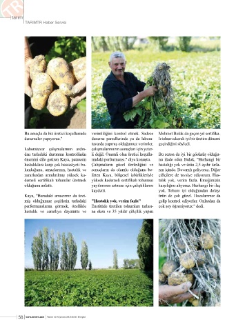denemeler yapıyoruz." deneme parsellerinde ya da labora- lı tohum ekerek iyi bir üretim dönemi