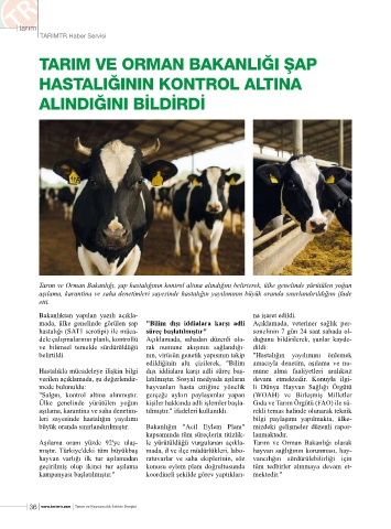 aşılama, karantina ve saha denetim- tılmıştır." ifadeleri kullanıldı. rekli temas halinde olunarak teknik