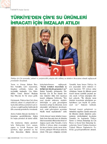 1Su ürünlerine ilişkin protokol- duğuna işaret eden Yumaklı, Çin'in Tarım ve Kırsal İşler Bakanlığı he-