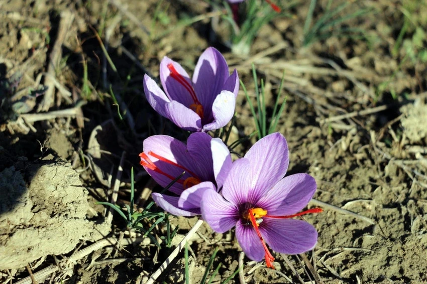 Yapılan konuşmanın ardından İlçe kaymakamı, protokol üyeleri ve çiftçiler safran hasadı yaptı.