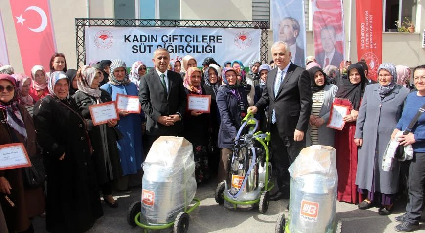 Kadın çiftçilere süt sağım makinesi dağıtıldı