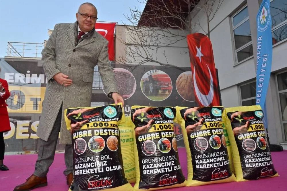Manisa Büyükşehir Belediye Başkanı Cengiz Ergün'ün tarımsal ve kırsal kalkınmaya yönelik 2023 yılı bütçesini 122 milyon TL olarak açıklamasının ardından yeni yılın ilk desteği 4 bin 877 üreticiye 1000 ton gübre desteği oldu. Üreticiler gübrelerin dağıtımında konuşan Manisa Büyükşehir Belediye Başkanı Cengiz Ergün, bir sonraki desteklerin hayvan üreticilerine 500 adet damızlık Koç dağıtımı olacağını söyledi.