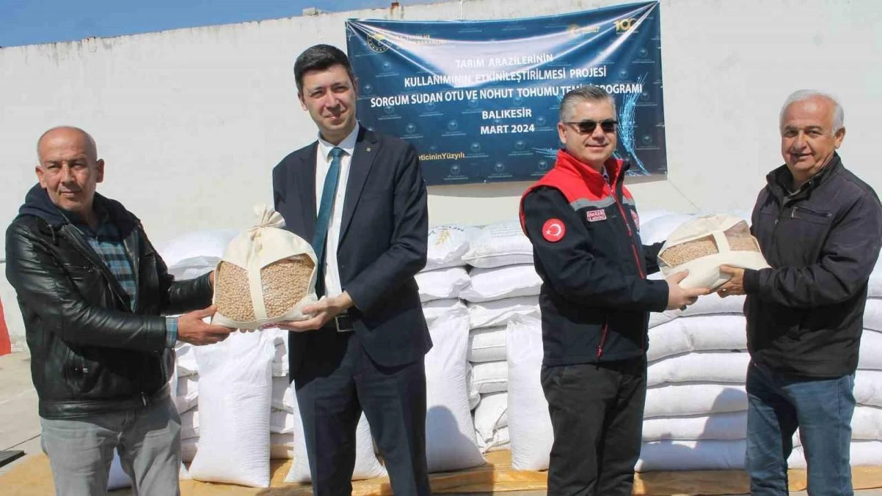 Balıkesir’in Manyas ilçesinde Tarım ve Orman Bakanlığı projesi kapsamında yüzde 75 devlet destekli tohumluk nohut dağıtımı yapıldı.