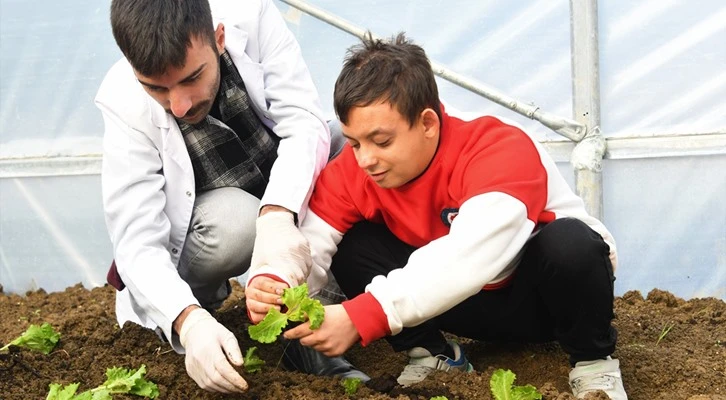 Samsun'da özel öğrenciler serada kışlık sebze yetiştiriyor