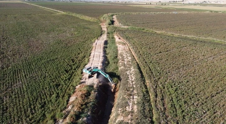 Harran ovasında DSİ ekipleri tahliye kanallarında temizlik çalışması başlattı