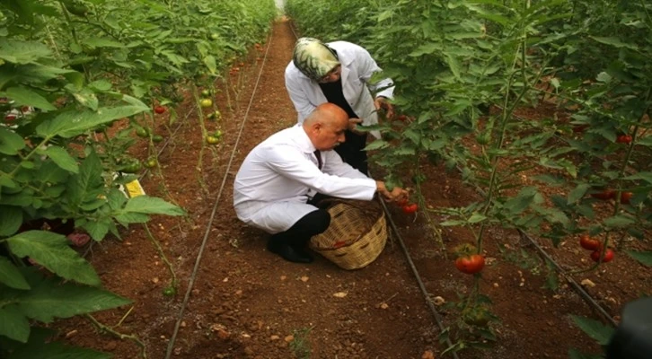 Tarım ve Orman BakanıVahit Kirişci, okulun sera alanında inceleme yaptıktan sonra eşi HanifeKirişci'yle beraber domates ve patlıcan hasadı yaptı.