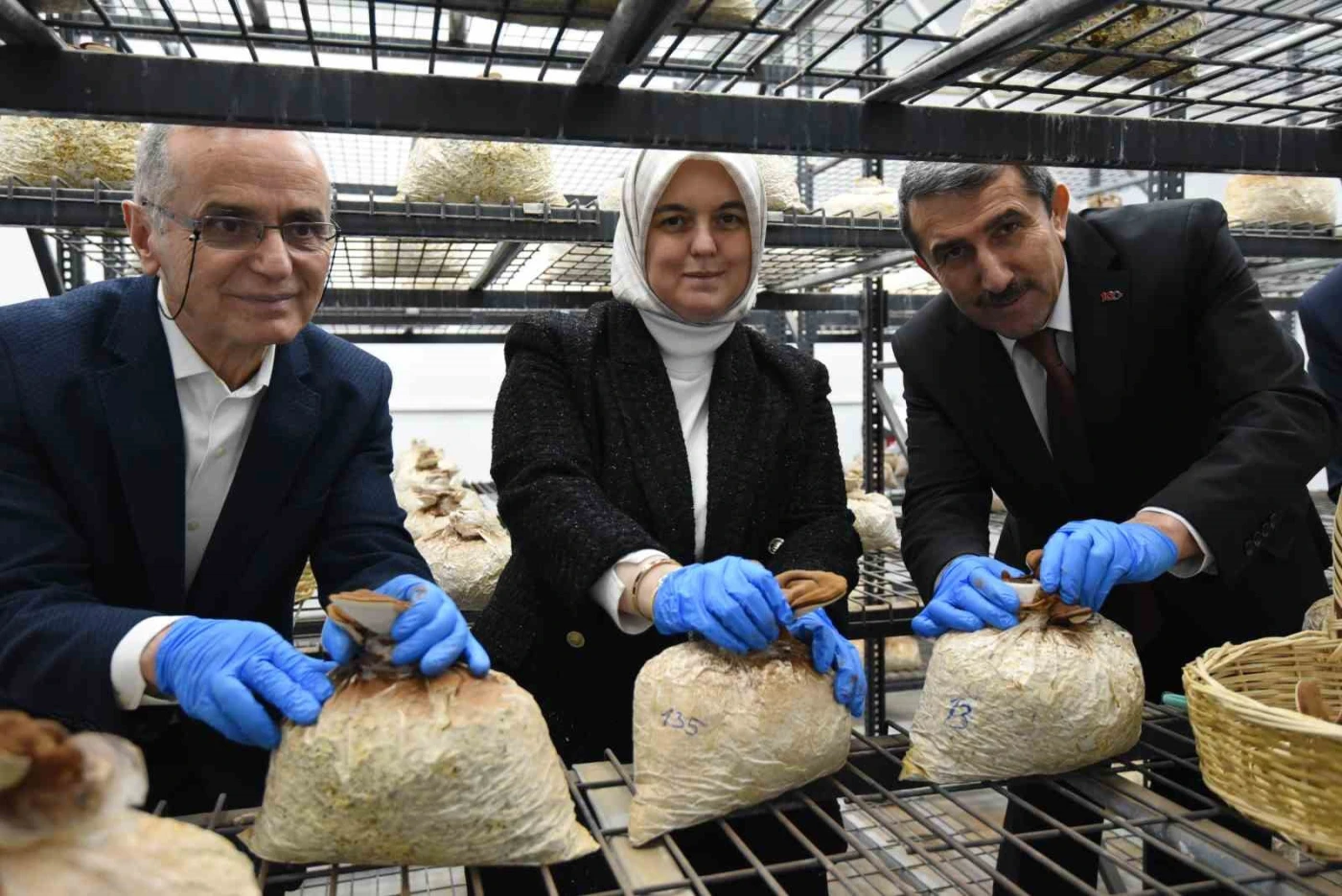 DÜTAGAM Müdürü Doç. Dr. Çağlar Akçay yaptığı açıklamada “Merkezimizde birçok tarımsal atıktan katma değeri yüksek ürünler olan tıbbi ve yenilebilir mantar, evsel atık organik gübre, tarımsal kompost gübre ve renkli/renksiz malç üretimi gerçekleştiriyoruz. Bugün ürettiğimiz tıbbi mantarların hasadını gerçekleştirdik. Mantarları üretirken bölgemizde ortaya çıkan fındık budama atıkları, fındık zürufu, buğday samanı, orman gülü bitkisinin dalları, mısır zürufları, kayın ve meşe talaşı olmak üzere farklı atıkları değerlendirdik. Yetiştirdiğimiz mantar, kurutulmuş olarak ve öğütülerek çayı demlenmek suretiyle tüketilmektedir. Sağlık açısından faydaları saymakla bitmiyor, geleneksel Çin tıbbında binlerce yıl kullanılmış ve günümüzde de takviye gıda olarak kullanılmaktadır. Perakende fiyatı 7-8 bin Türk Lirası’nı buluyor. Amacımız bölgemizde ortaya çıkan atıklardan katma değerli ürünler üreterek bölge halkının kalkınmasına katkıda bulunmaktır” ifadelerini kullandı.