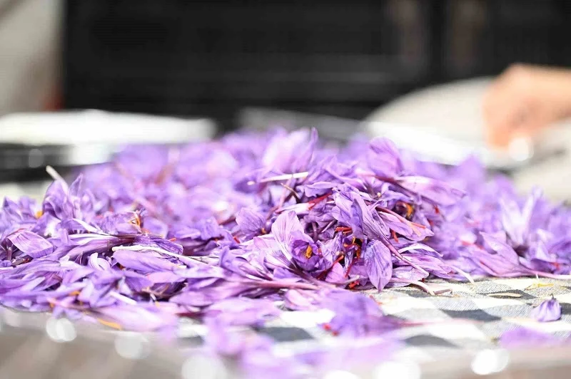 Topraksız dikey tarım safran tesisinde hasat başladı