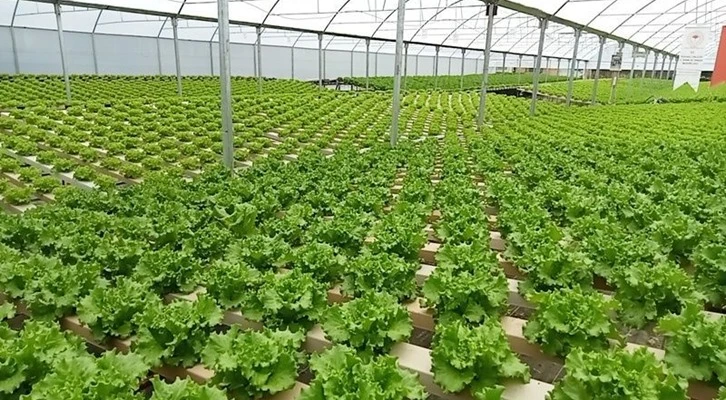 Topraksız tarım uygulamasıyla üretilen sebzelerin hasadına başlandı