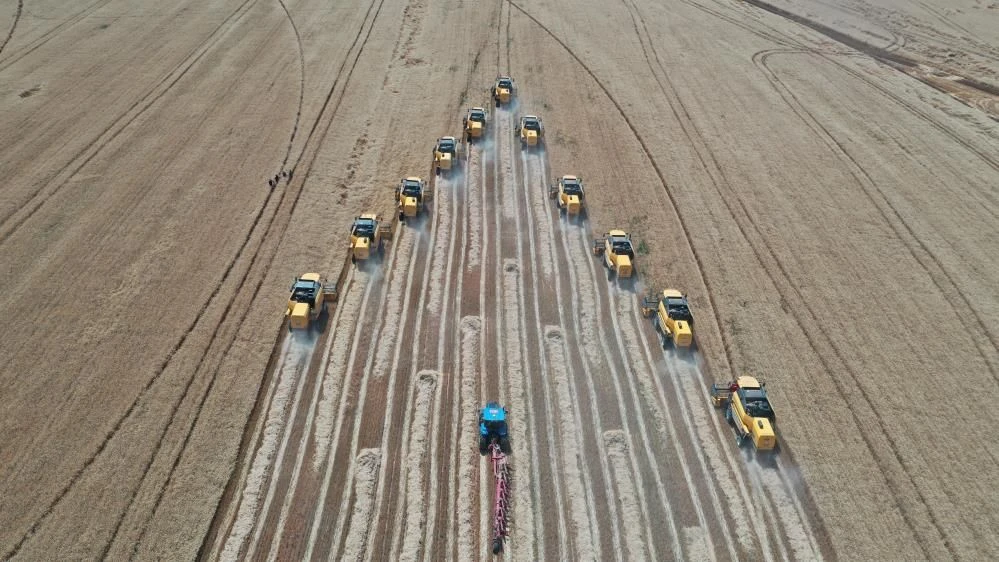Yaklaşık 2 hafta önce hasadına başlanan buğday için 240 biçerdöver aynı anda tarlaya girdi. Bin 200 işçinin çalıştığı hasat döneminde biçerdöverlerin topladığı buğdayı depolara taşıması için 131 kamyondan yararlanılıyor.