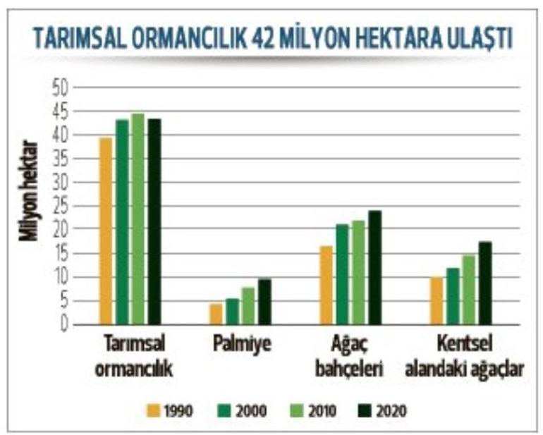 Türkiye’nin tarım ve ormancılık politikalarında tarımsal ormancılığın yer almadığını belirten FAO, temel tarımsal ormancılık uygulamalarından çalı ve ağaçların, yem ve hayvansal üretimle birleştirilmesi yönteminin, tıbbi veya süs bitkileri üretimine ayrılmış orman alanlarının ve toprağı rüzgâr erozyonuna karşı korumak için ekim alanlarını veya meraları çevreleyen ağaç ve çalı şeritlerinden oluşan rüzgâr perdesi şeritlerinin olduğunu belirterek, “Tarımsal ormancılığın uygulanması için bir potansiyel mevcut gibi görünüyor. Halihazırda bu uygulamalar, Türkiye’de var ancak resmi olarak tarımsal ormancılık ismi altında kaydedilmiyor” değerlendirmesini yaptı.
