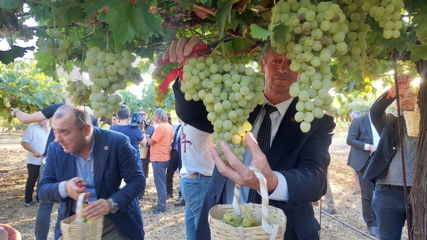 Süleymanpaşa Halk Dansları Topluluğunun gösterisinin ardından, davul zurna eşliğinde üzüm bağına geçen protokol üyeleri, üzüm hasat etti.